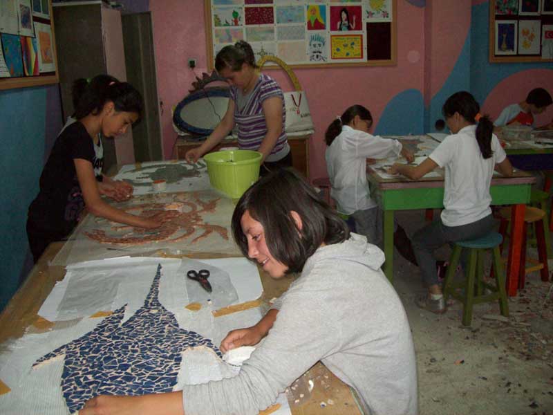 Çocuklar derslerde, ebru, kuru boya, pastel boya, sulu boya, guaş boya ile tual, alüminyum folyo, cam, kâğıt gibi materyaller üzerine resim çalışmaları yaparak, malzeme tanıma ve uygulama konusunda seviyelerine göre teknik bilgi alma imkânı bulurlar.